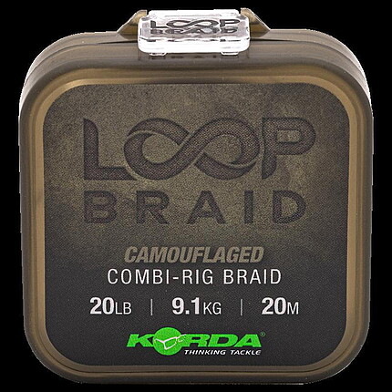 Acest testil suplu, dar foarte rezistent la abraziune, este perfect pentru realizarea monturilor combi, deoarece este suficient de rigid pentru a împinge cârligul departe de secțiunea brațului atunci când utilizați momeli neutre. Ideal pentru montura combo Loops & Booms, în care bucla împletită este legată într-un stil blow-back, în loc să utilizeze piese metalice suplimentare, cum ar fi inele sau vârteje. În timp ce Loop Braid este perfect pentru a face monturi loop-to-loop, funcționează extrem de bine și pentru legarea monturilor care necesită un nod Albright. Loop Braid este disponibil în culoare camo și rezistență la rupere de 20 lb. Bobinele pătrate se potrivesc perfect în cutia Korda Tackle și conțin fiecare 20 m de fir.