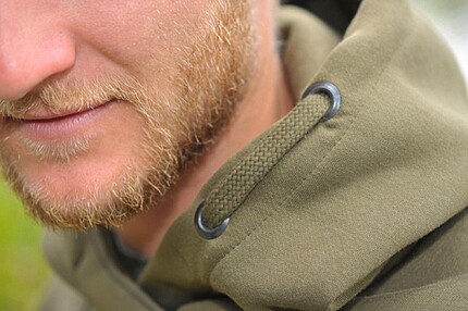 Manșetele și gulerul sunt largi pentru a permite un flux de aer amplu, iar gluga poate fi reglată datorită șnurului.