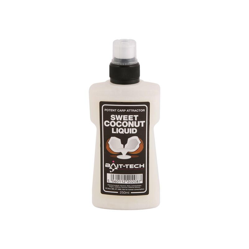 Bait-Tech Liquid este un aditiv lichid cu diferite arome, aroma ce si-a dovedit eficienta in pescuitul exemplarelor mari de crap. Acesta poate fi folosit atat in apa folosita la inmuierea TTX-ului, umectarea nadei sau a peletelor. De asemenea, poate fi folosit si pentru a glazura pelete gata umectate si pregatite pentru momitoare Method Feeder precum si a momelilor de carlig.