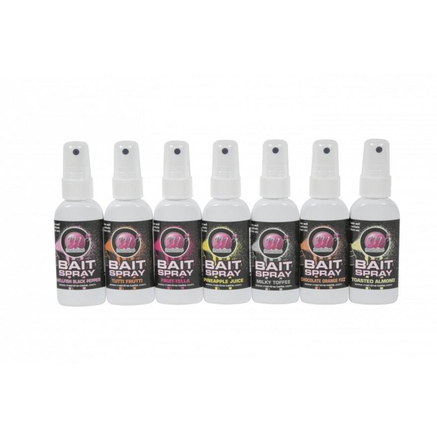 Folosind re’etele de amestecuri de aromă, îndulcitori și atractanţi lichizi utilizați în gama pop-up Hi-Visual, a fost creată o gamă de spray-uri Bait Spray pentru a îmbunătăți prezentarea momelilor de cârlig. Alegerea aromelor se potrivește perfect cu gama populară de pop-up Hi-Visual, dar merg la fel de bine şi pentru orice momeală în care se dorește un impuls instantaneu de atracție.