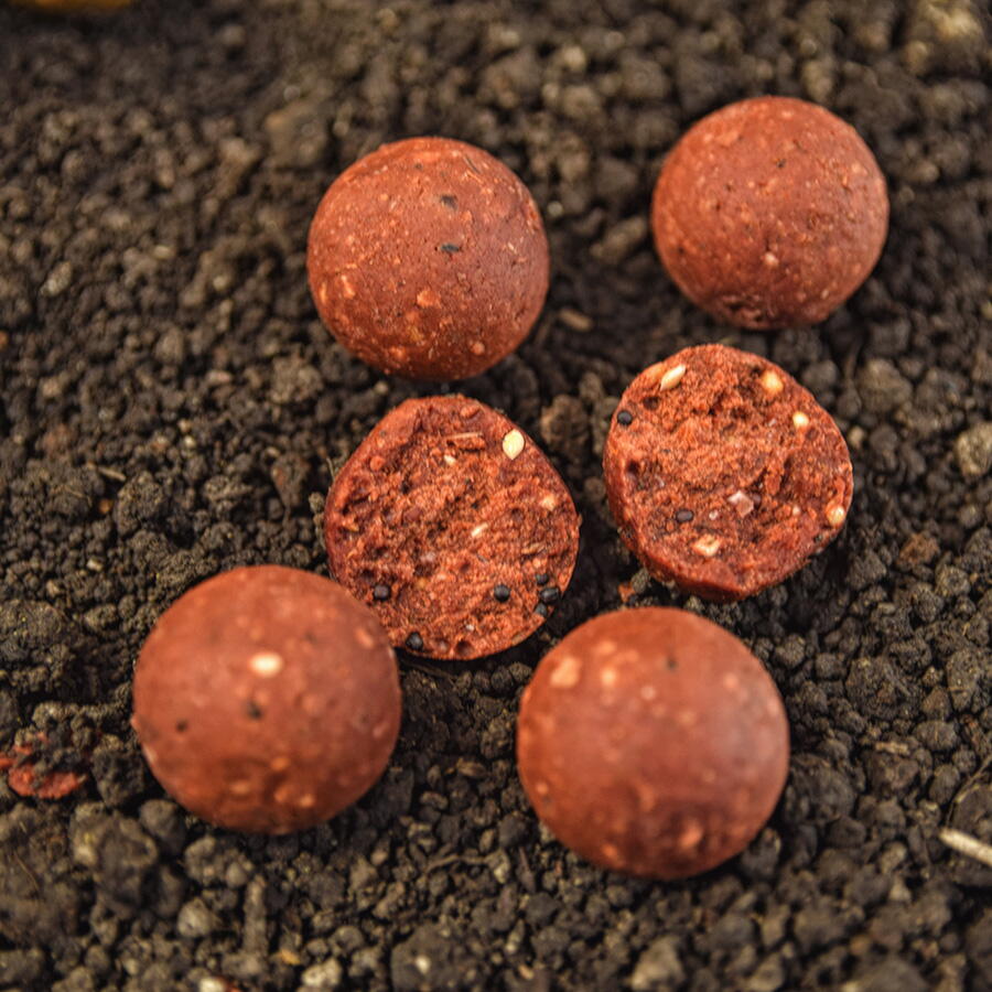 ✅ Procesul este unul simplu dar controlat și făcut așa cum ne place și nouă să folosim boiliesuri dipuite. Realizăm boiliesuri Red Squid de diferite mărimi, cu cele mai mici cantități de conservant posibil, le uscăm, apoi Superdip Red Squid sunt finalizate prin dipuiri și uscări succesive timp de 2 săptămâni, care să facă ca partea lichidă cu care dipuim să intre în întregul boilies, nu doar în primele straturi. În acest mod atracția lor va fi una atât pe termen scurt cât și pentru mai multe ore de la lansare.