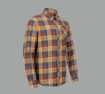 Cămașă de flanel cu mânecă lungă, realizată din amestec de fire de bumbac/poliester. În exterior, piersic pentru o atingere mai moale, 1 buzunar superior, guler cu nasturi și detalii cu branding Blaser pe buzunar și pe clapa inferioară din față.