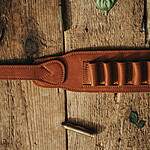 Cartușieră confecționată din piele naturală de bovină, căptușită cu piele. În partea de jos, locașul cartușului este deschis.