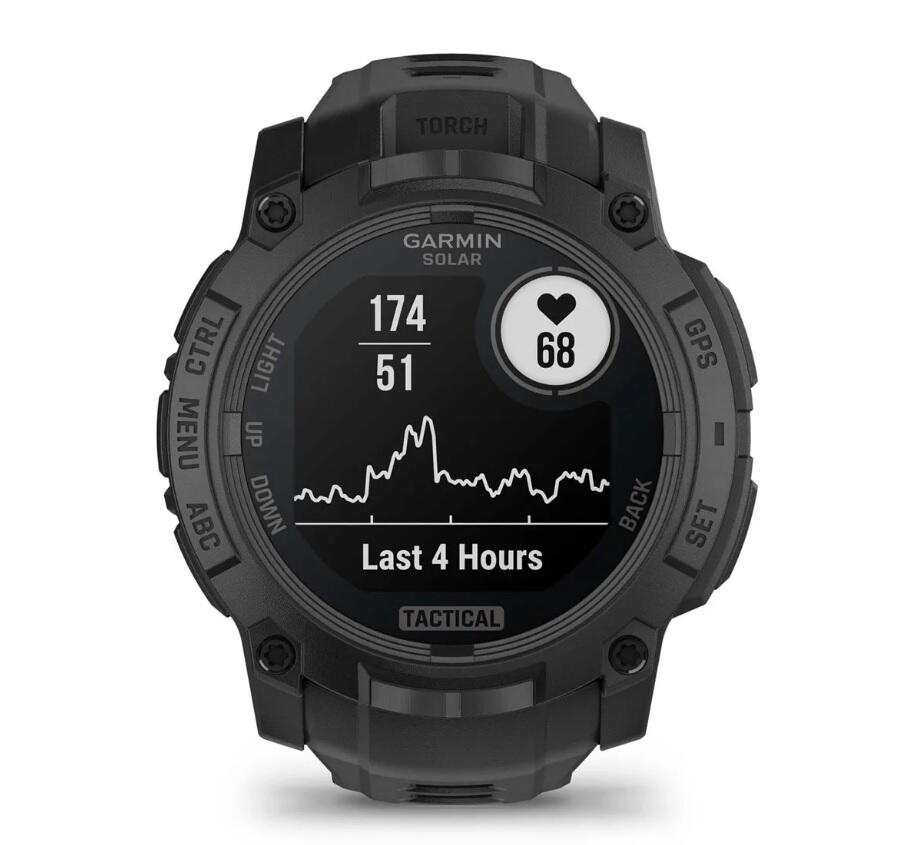 Instinct 3 – Tactical Edition îți monitorizează constant pulsul, astfel încât să fii mereu la curent cu starea ta de sănătate, zi și noapte1.