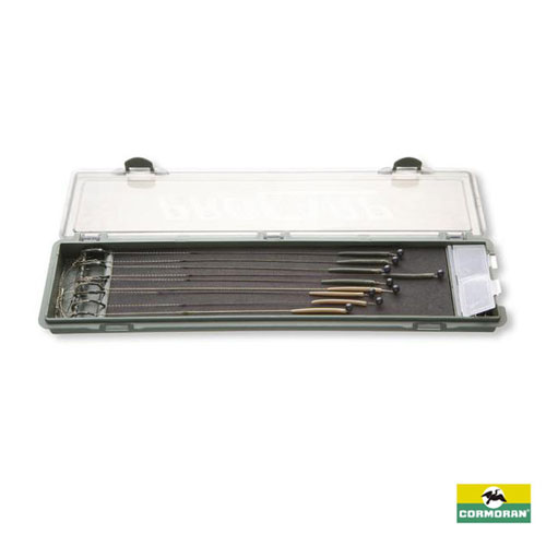 Cutie usor de manipulat, special dezvoltata pentru a fi pastrate drepte aprox. 15 monturi de crap. Cu 2 cutii mici separate, pentru depozitarea acelor.