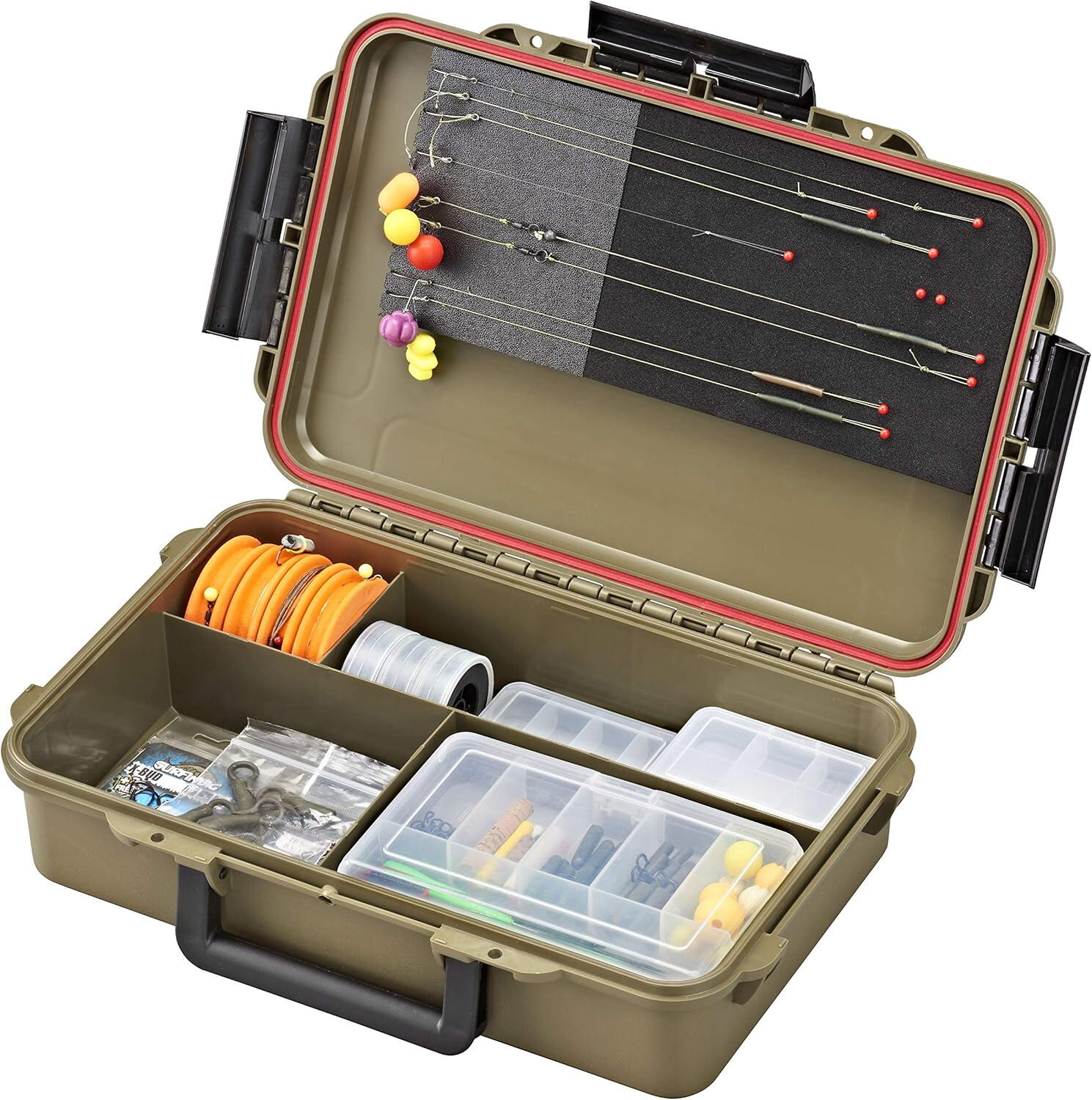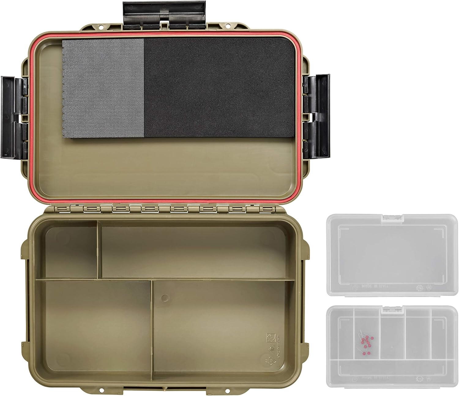 ✅ Cutia e prevăzută cu spumă de înaltă densitate pe o parte, în care se pot depozita cu ușurință și în siguranță linguri oscilante și rotative și cu spații de depozitare ajustabile, ideale pentru voblere, plastice moi, jiguri, cârlige, agrafe și orice alte accesorii de mici dimensiuni