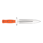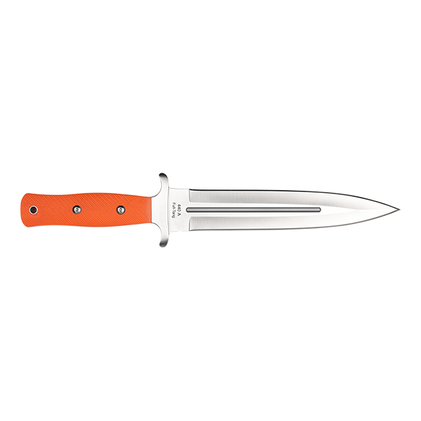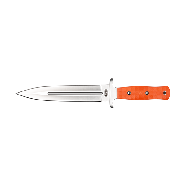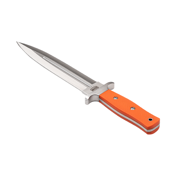 Cuțitul de vânătoare MAUSER hunting dagger este un instrument tradițional de vânătoare și a fost dezvoltat pentru uciderea vânatului. Un cuțit de vânătoare este preferabil unei arme de foc în anumite situații, de exemplu atunci când vânatul localizat și încolțit de câini trebuie ucis, iar tragerea ar reprezenta un risc pentru oamenii și animalele din apropiere. Cuțitul de vânătoare are o lamă ascuțită pe ambele părți, din oțel 440C cu caneluri pentru sânge, precum și o lamă ușor rotunjită care facilitează pătrunderea în vânat și previne blocarea cuțitului în os. 440C este un oțel inoxidabil cu duritate bună, rezistență la coroziune și ascuțire bună. Designul full-tang, cu lama și mânerul fabricate dintr-o singură bucată de oțel, asigură o stabilitate extrem de bună. Mânerele sunt fabricate din material compozit robust G-10, sunt adaptate ergonomic pentru activitățile de vânătoare și asigură o prindere fiabilă și antiderapantă. Cuțitul poate fi depozitat în teaca de piele furnizată, cu buclă pentru curea.