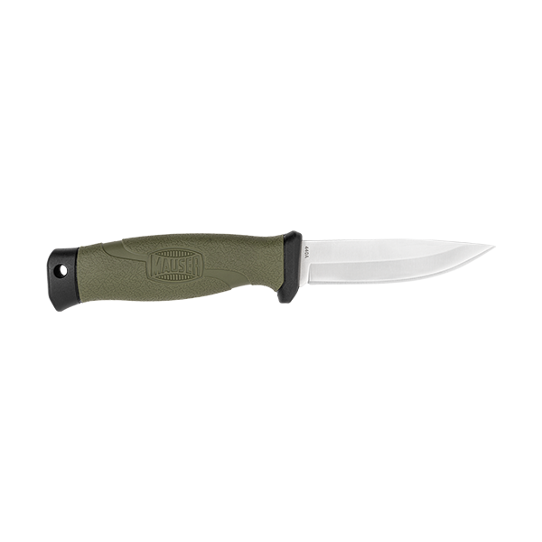 Cuțitul de vânătoare MAUSER este un clasic polivalent. Lama inoxidabilă din oțel 440A are 9,6 cm lungime și 3,7 mm lațime. Este ușor de ascuțit și este rezistent la coroziune. Cuțitul de vânătoare are o lungime totală de 21,7 cm. Mânerul din plastic cu designul clasic MAUSER culoarea verde închis asigură o prindere confortabilă, fiabilă, fără alunecare. Sigla MAUSER de pe mâner este o altă caracteristică atrăgătoare. Cuțitul poate fi depozitat în teaca din plastic furnizată cu clemă pentru curea.