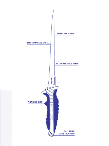 Perfect pentru peștii de apă dulce mai mici, acest cuțit pentru filetat Mustad de 7 inchi (17,8cm), are un mâner de prindere de golf foarte moale, oferind o aderență excelentă în timpul filetării. Designul lamei curbate oferă un unghi de lucru mai bun pentru a tăia cât mai aproape de os pentru un randament maxim. Marginea fără suport a lamei permite utilizarea întregii lame și facilitează ascuțirea. Flexibilitate: medie