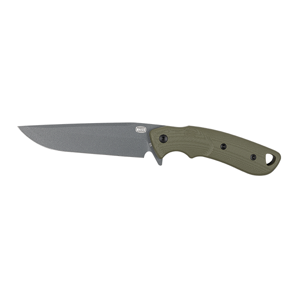Cuțitul original MAUSER – Large, cu lungimea de 22 cm, este realizat fără compromisuri, durabil și perfect pentru toți cei cărora le plac aventurile în natură. Designul full-tang, cu lama și mânerul dintr-o singură bucată de oțel, asigură o stabilitate extrem de bună în timpul tăierii sau eviscerării. Lama este realizată din oțel D2 durabil, combinând astfel o ascuțire bună și de lungă durată cu rezistența la coroziune. Mânerul din plastic cu designul clasic MAUSER asigură o prindere confortabilă și sigură.