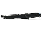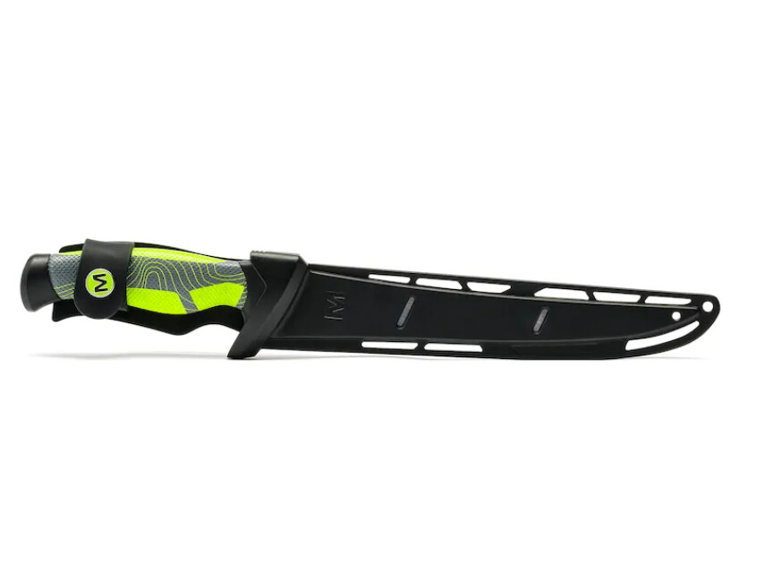 Noul cuțit de filetat rigid de 9"" este echipat cu o lamă din oțel inoxidabil fabricat în Germania și un finisaj lustruit pentru a rezista la rugină și a spori ascuțirea. Mânerul anti-derapant al cuțitului este proiectat ergonomic pentru un confort superior. Teaca include un curățător de pește, păstrând ambele unelte accesibile.