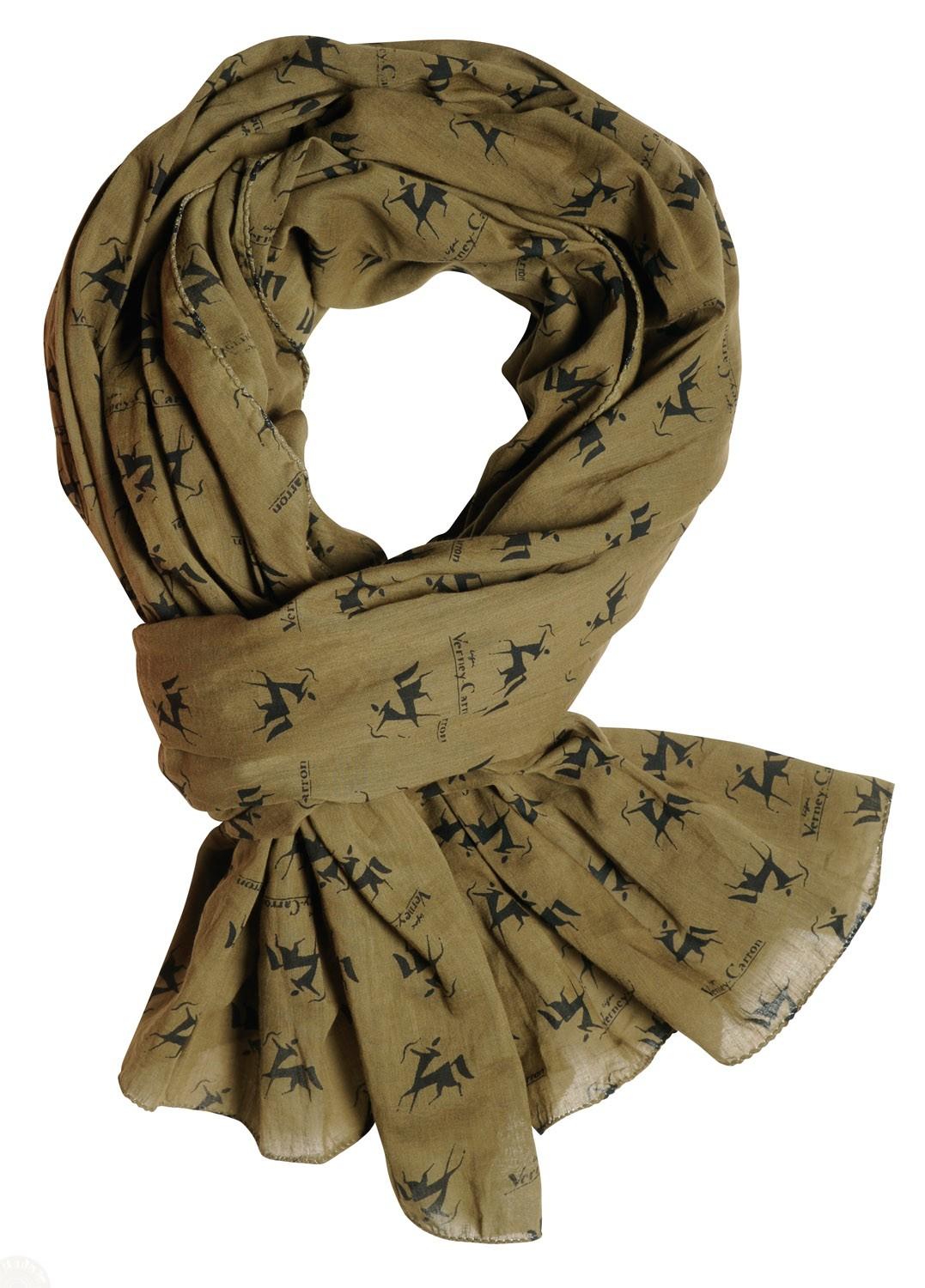 Eșarfă kaki 100% bumbac cu imprimeu Verney-Carron.