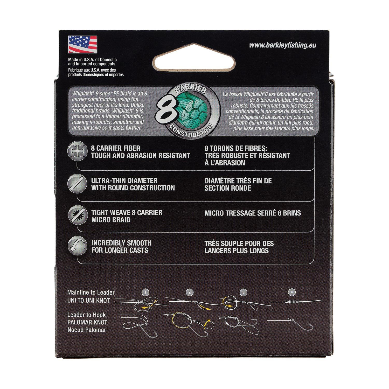 Berkley® Whiplash® 8 este un textil legendar care este binecunoscut pentru că este unul dintre cele mai puternice textile de pe piață! Este un super-textil realizat din de 8 fibre perfect împletite, folosind 100% fibră PE. Nu contează dacă aveți cel mai mare specimen de apă dulce sau sărată în drill, veți avea întotdeauna puterea de luptă extremă a lui Whiplash 8, pe care să vă bazați.