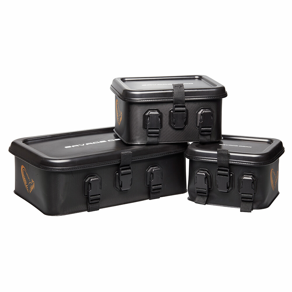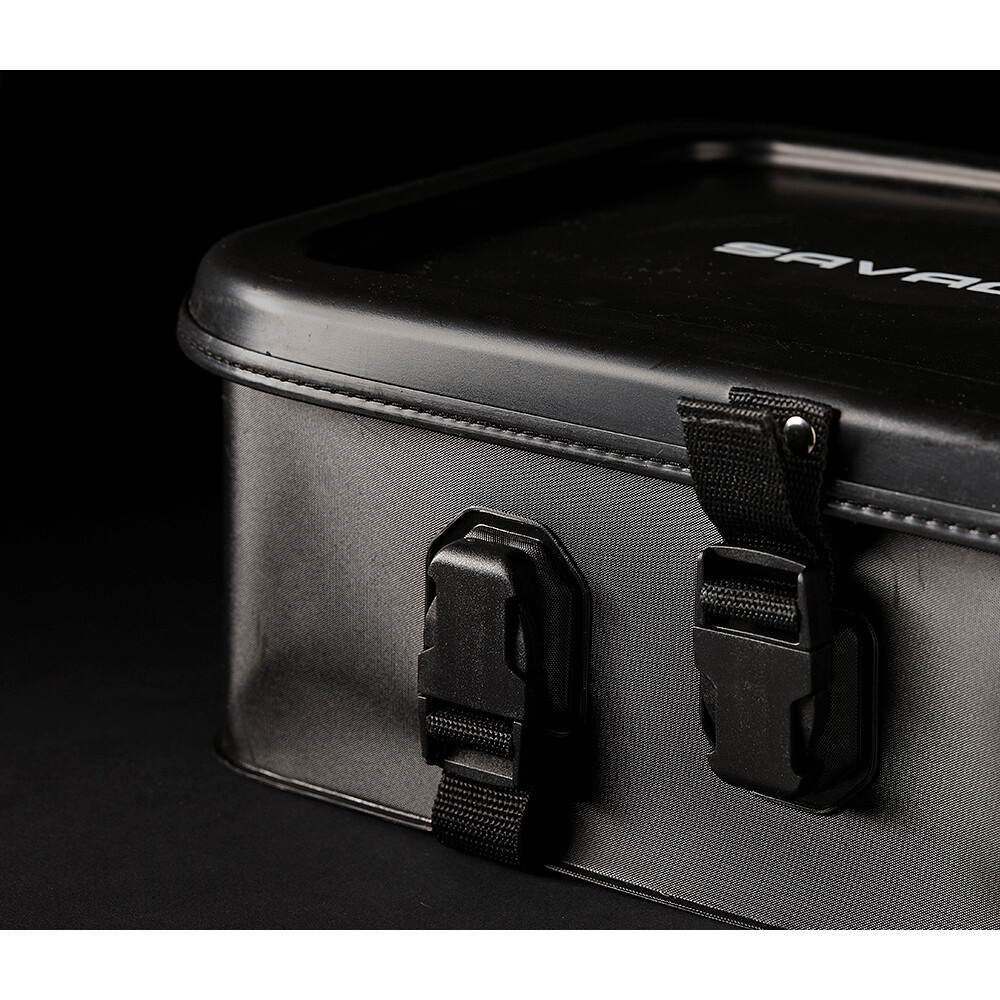 Container mare, rezistent la apă, din material EVA foarte gros de 2mm. Capacul robust și rigid poate fi folosit ca masă de rigg. Buzunarele interioare, realizate din material EVA rigid, fixate cu clemă de cadru, oferă spațiu pentru echipament, monturi, plumbi etc. datorită separatoarelor. Are suficient spațiu în partea de jos pentru a păstra în siguranță senzorii etc.