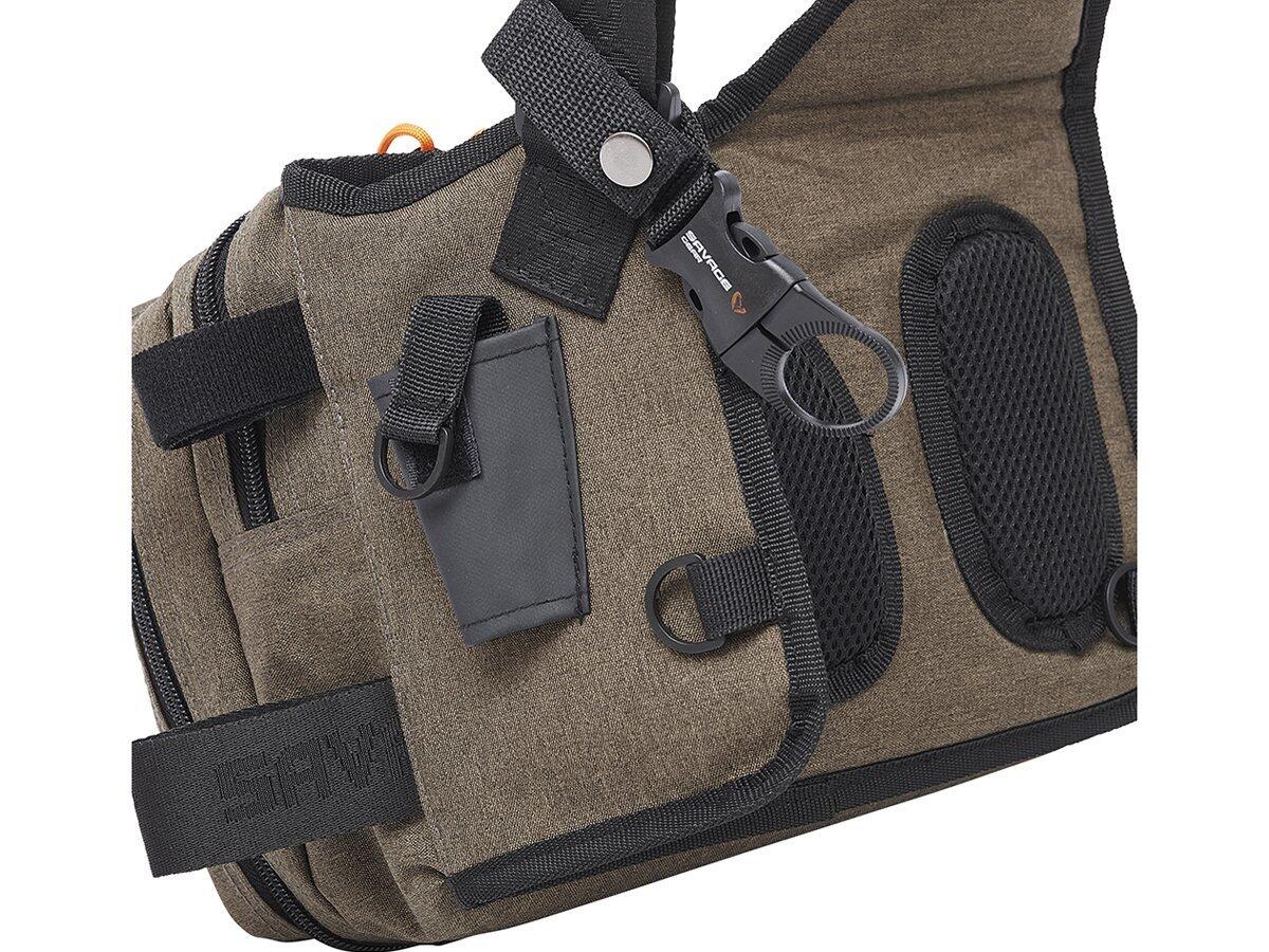 Pentru pescarii care practică un pescuit activ pe malul apei și doresc să aibă cât mai puțin echipament, doar strictul necesar, această geantă de umăr practică are soluția. Dispunând de un compartiment frontal rabatabil, accesibil cu ușurință, cu cutie fixă de naluci 5B în interior, compartimentul principal include 10 pungi de PE rezistenti pentru monturi și năluci soft.