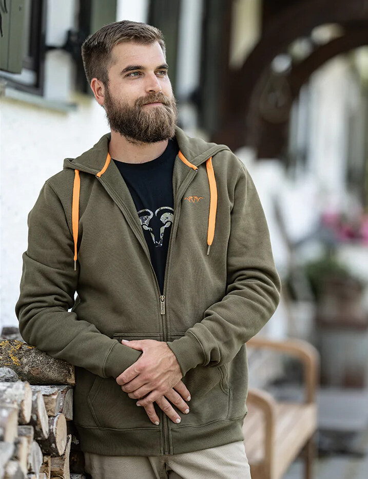Jacheta Blaser Hoodie 23 este un hanorac super confortabil, dens la interior, din bumbac periat și poliester cu fermoar complet, cu buzunare marsupiu și șiret de culoare contrastantă.