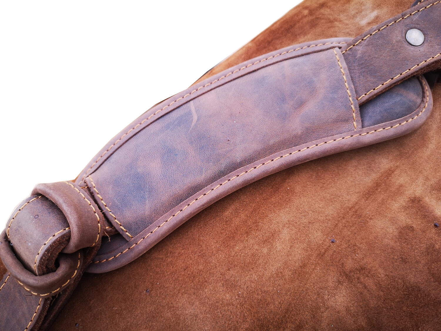 – Curea de umăr ajustabilă și mânere din piele pentru un transport facil.