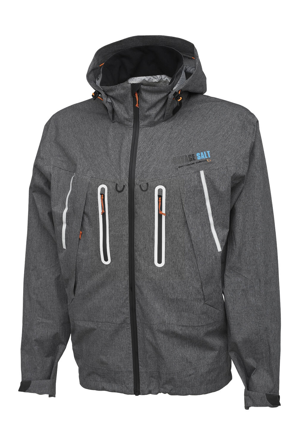 Jacheta Savage Gear Salt Pack-Lite este ultra ușoară, de culoare gri închis. Este confecționată dintr-o țesătură subțire, dar puternică, ășor elastică și este 100% impermeabilă 8000mm și 3000mvp.