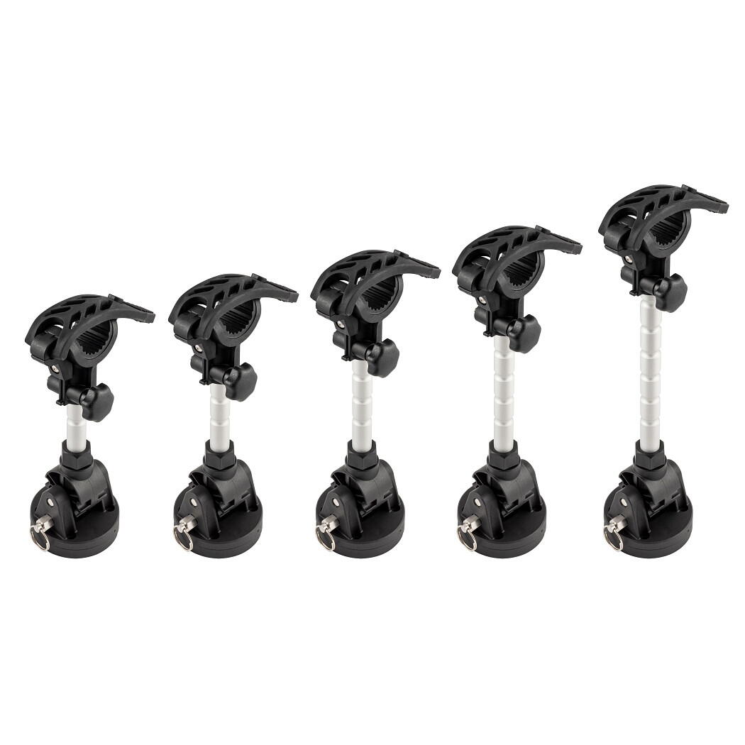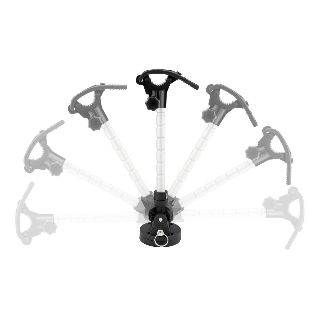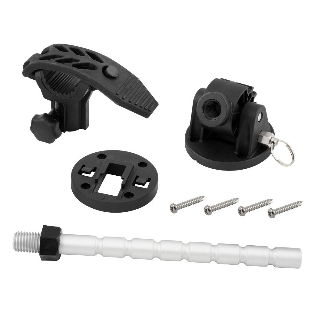 Dispozitiv de fixare pentru motoarele de trolling montate pe arc. Echipat cu o bază de montare cu profil redus care permite îndepărtarea cu ușurință a stabilizatorului. Brațul pivotant poate fi pliat atunci când nu este utilizat.