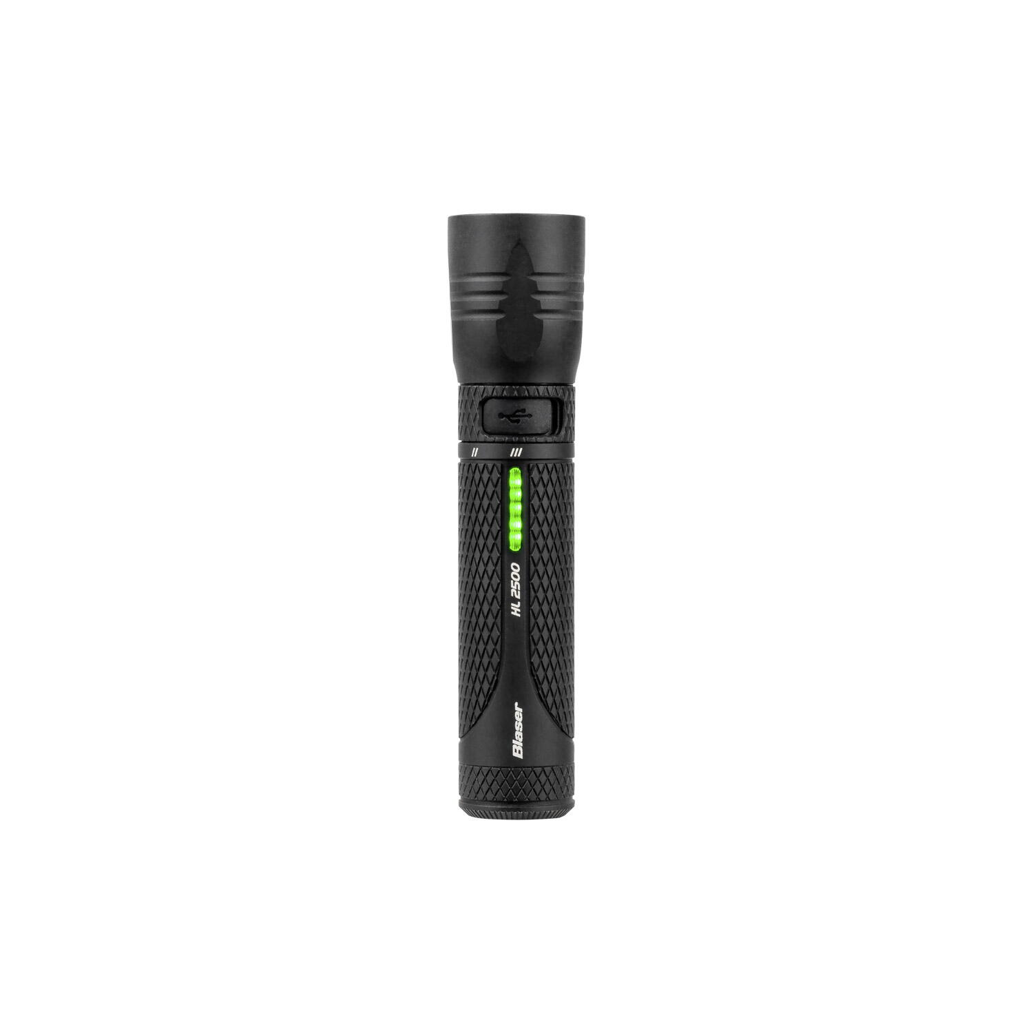 Această lanternă extrem de funcțională, cu design elegant Blaser, are un flux luminos de 2500 lumeni și o rază maximă de acțiune de 150 m la nivelul cel mai înalt. Pot fi selectate 3 moduri diferite de lumină albă. Fasciculul luminos larg perfect pentru căutarea potențialelor urme de animale după o împușcătură reușită, precum și pentru urmărirea vânatului rănit. Blaser HL2500 este o lanternă compactă și puternică, cu o carcasă din aluminiu T6 și o lungime totală de 13 cm. HL (hunting light) înseamnă „lumină de vânătoare”, deoarece lanterna a fost dezvoltată special pentru activitățile de vânătoare și cerințele acestora.