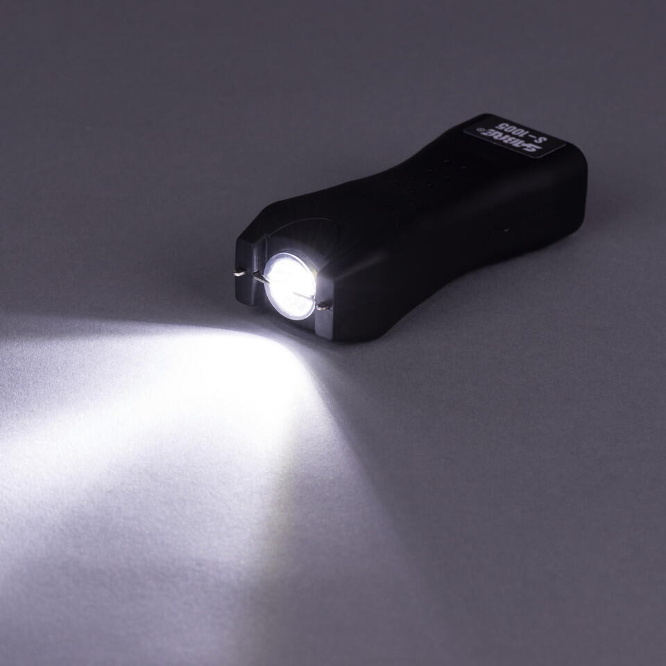 Rămâi în siguranță cu lanterna mini cu electroșocuri SABRE 2 în 1, cu o încărcătură de 1,60 µC (Microcoulombs).