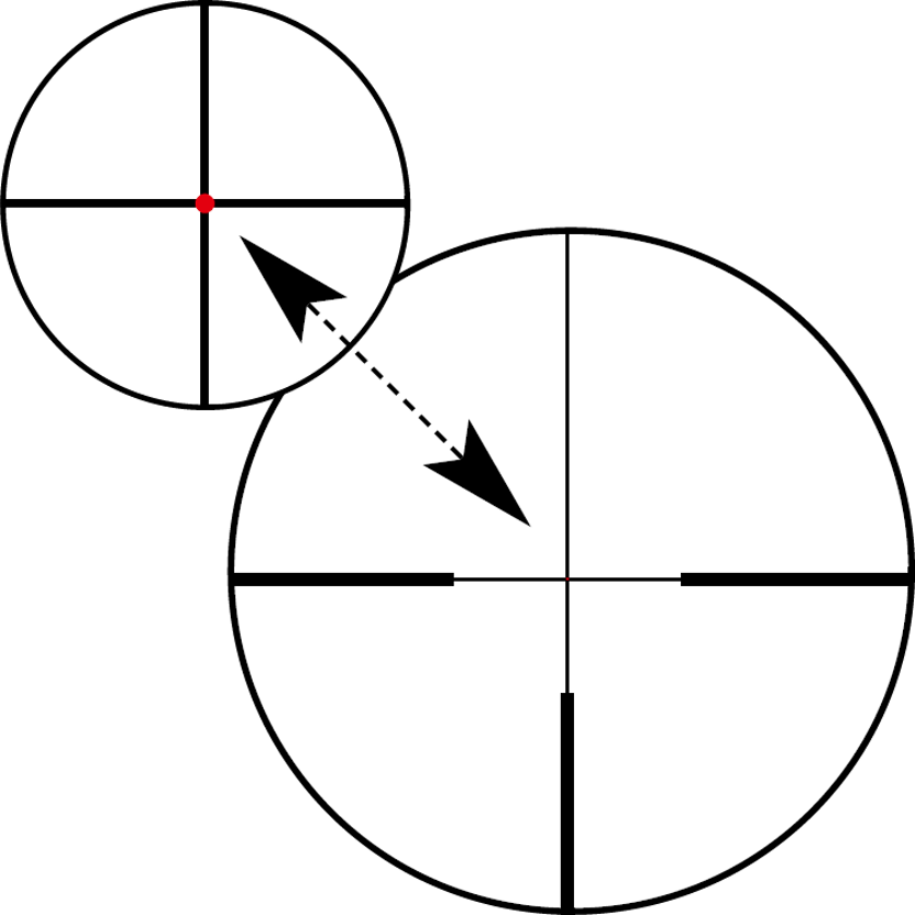 Mărirea de 1,1x este echivalentă cu vederea naturală a omului. Prin urmare, vânătorul poate folosi confortabil ambii ochi deschiși – pentru o conștientizare totală – atunci când țintește. Vederea de ansamblu a vânătorului prin lunetă și în afara lunetei ilustrează caracteristicile imaginii complete, curate și echilibrate vizual. Acest lucru permite o imagine de ansamblu rapidă și ideală a mediului, rezultând o ochire mult mai rapidă a țintei.