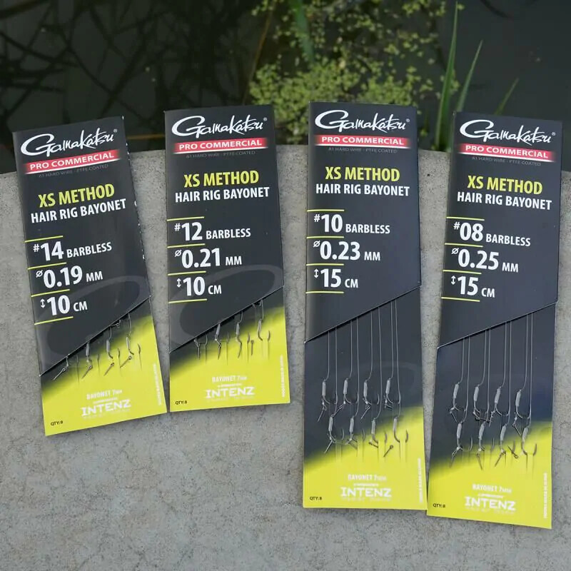 Monturile XS Method Hair Rigs Barbless sunt fabricate la cele mai înalte standarde de calitate. Cârligele sunt Gamakatsu A1 Hardwire, acoperite P.T.F.E. Pentru fiecare dimensiune de cârlig, rezistența la rupere a firului este potrivită cu rezistența cârligului pentru a crea un echilibru optim între rezistență și flexibilitate. Monturile sunt ambalate drept și bine protejate și sunt ușor de ales. Prevăzute cu baionett pe firul de par, perfecte pentru boilies, dumble si wafters de diferite mărimi. Toate aceste monturi sunt excelente pentru pescuitul la crap și alte specii mari.