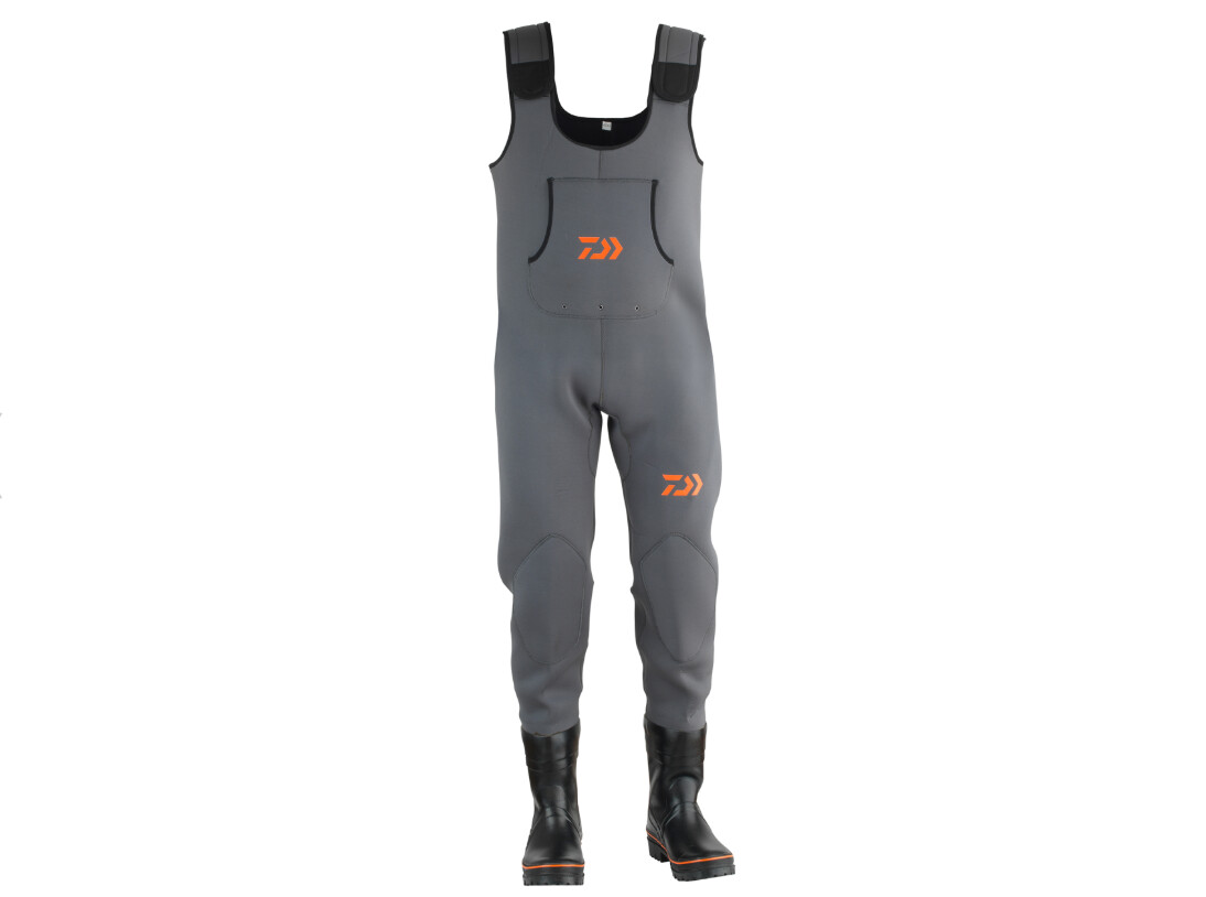 Acest waders de neopren DAIWA D-VEC este fabricat din material de 4mm grosime și are cizma de cauciuc de calitate, cu talpă cu crampoane și armată cu placă de oțel.