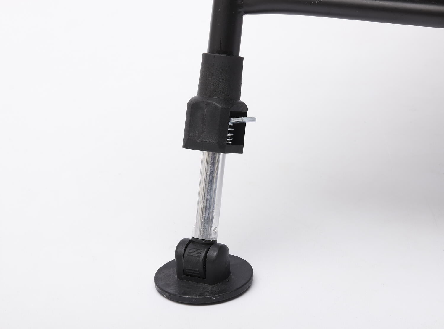 Un scaun de pescuit practic, cu picioare reglabile pe înălțime și tălpi pentru noroi.