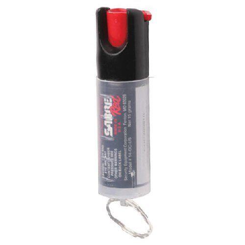 Spray defensiv eficient de la SABER Red, cu capacitate de până la 20 de pulverizări cu o rază de acțiune de 12 picioare. Utilizat de forțele de ordine și agenții de securitate.