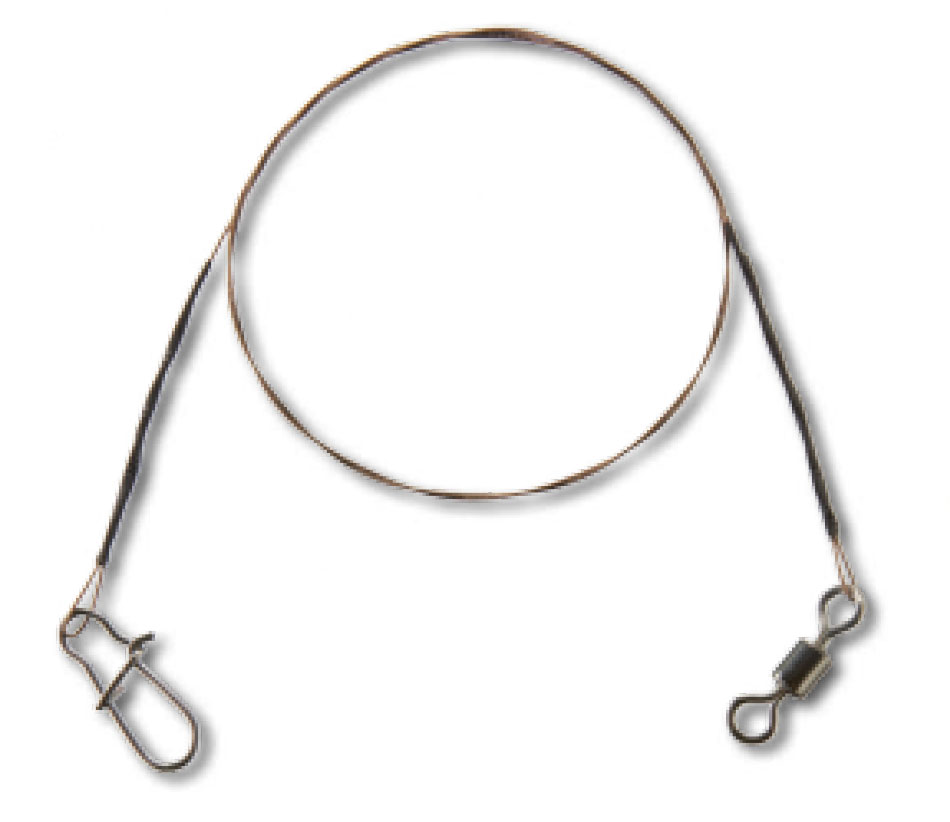 Strună de oțel, foarte accesibilă, cu vârtej și agrafă, cu aplicaţie aplicată universală la pescuitul răpitorilor.