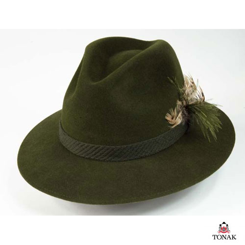 Palarie clasica pentru vanatoare , cu panglica tesuta si pana.