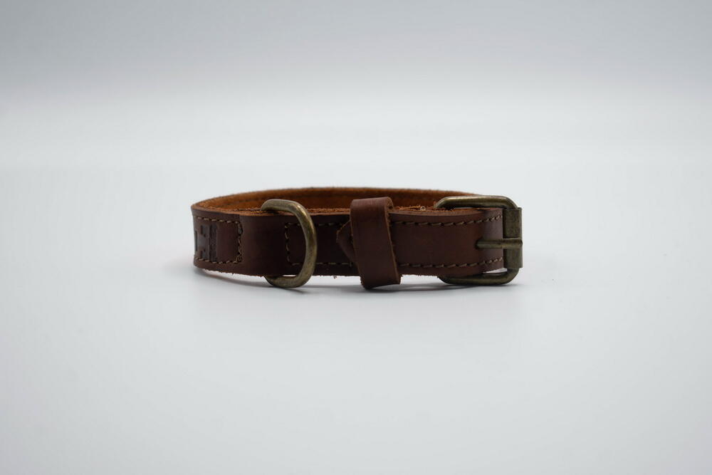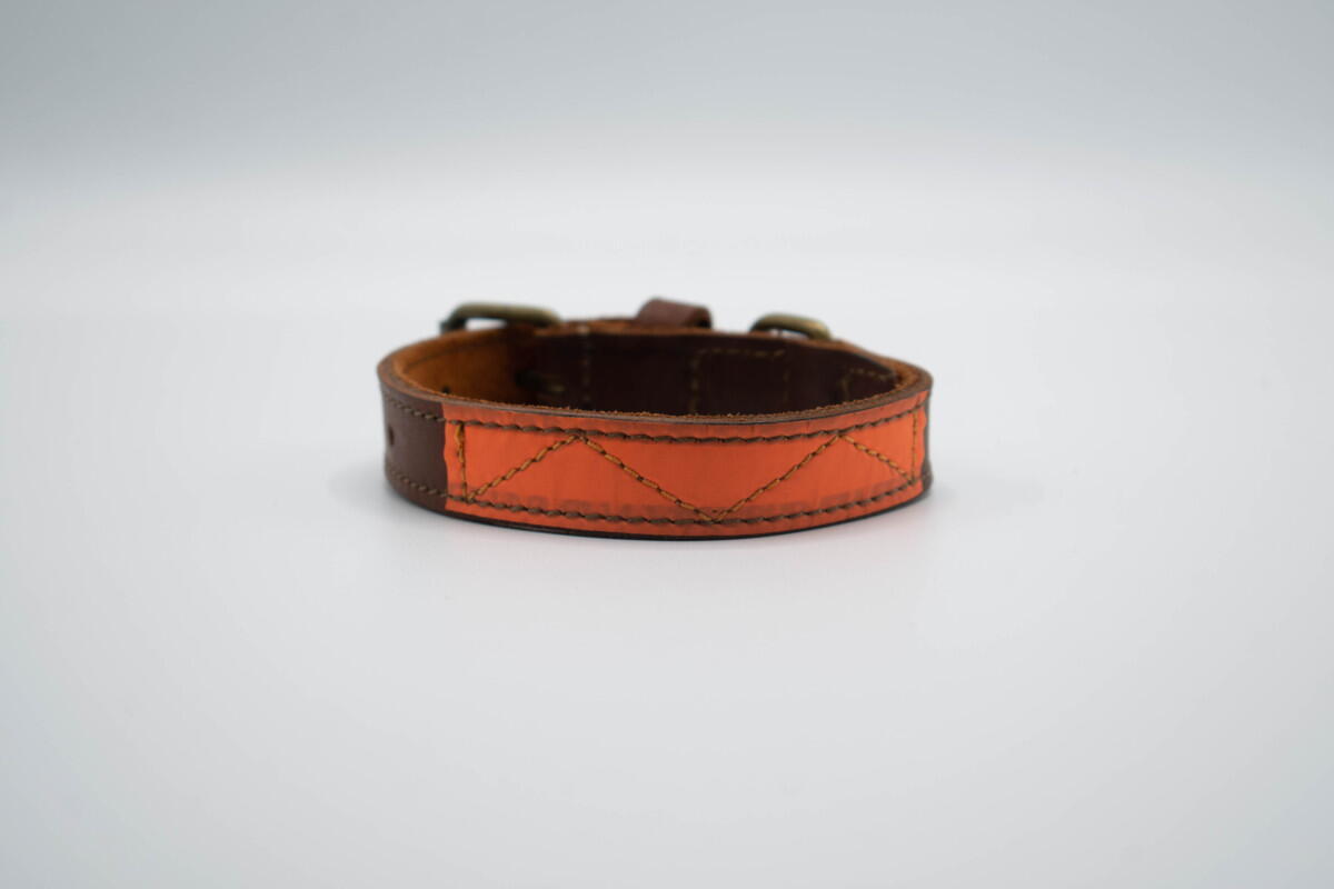 ZGARDA PIELE CU BANDA FOSFORESCENTA 3CM CIOCOLATA